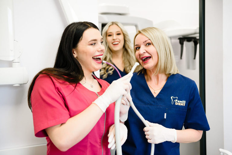 Misją naszego gabinetu jest świadczenie profesjonalnych, kompleksowych usług na jak najwyższym poziomie. Jak sama nazwa wskazuje, stworzyliśmy miejsce, w którym każdy członek rodziny znajdzie swojego lekarza. Family Dent to gabinet, w którym leczymy dzieci, młodzież, osoby dorosłe oraz seniorów. Szczególną uwagę przykładamy do leczenia naszych najmłodszych Pacjentów. Rodzice mogą mieć pewność, że nasi stomatolodzy każde odwiedzające nas dziecko otaczą właściwą opieką.